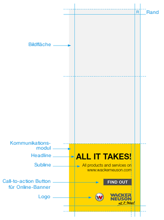 - Die Größe des Schriftzuges ist variabel, bei einer zusätzlichen Kennzeichnung wird jedoch die Breite des Wacker Neuson Logos herangezogen.