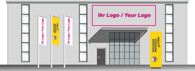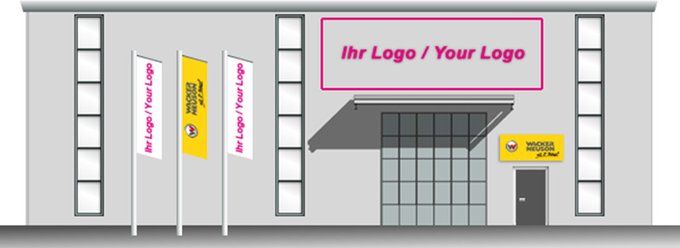 There are various options for marking a Wacker Neuson dealer. The presentation of both logos takes place at the eye level.