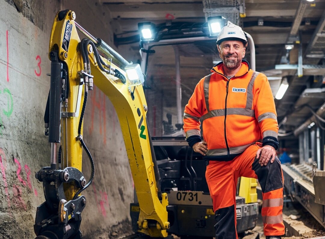 - Batterie-elektrischer Antrieb für emissions- und geräuscharmes Arbeiten auf der Hauptbahnhof-Baustelle